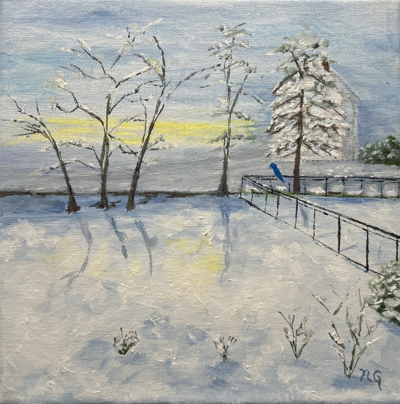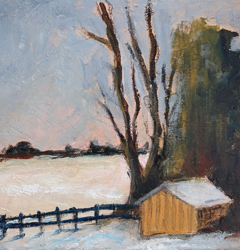 Yellow Shed in Winter Snow by Seema Bhattacharjee